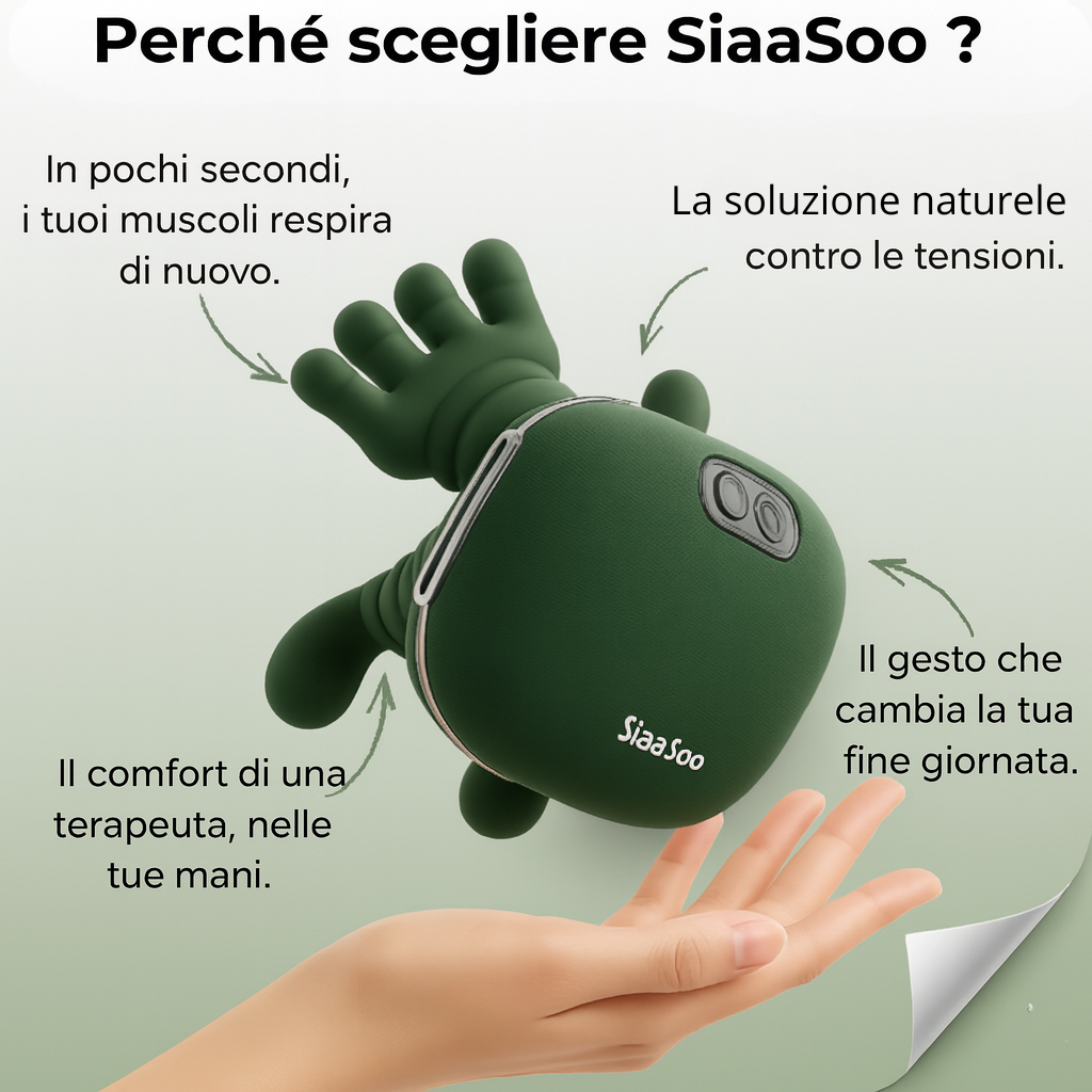 Creato per chi desidera molto più di un semplice massaggio,SiaaSoo™ combina eleganza e tecnologia bionica per regalare un sollievo intenso e immediato.